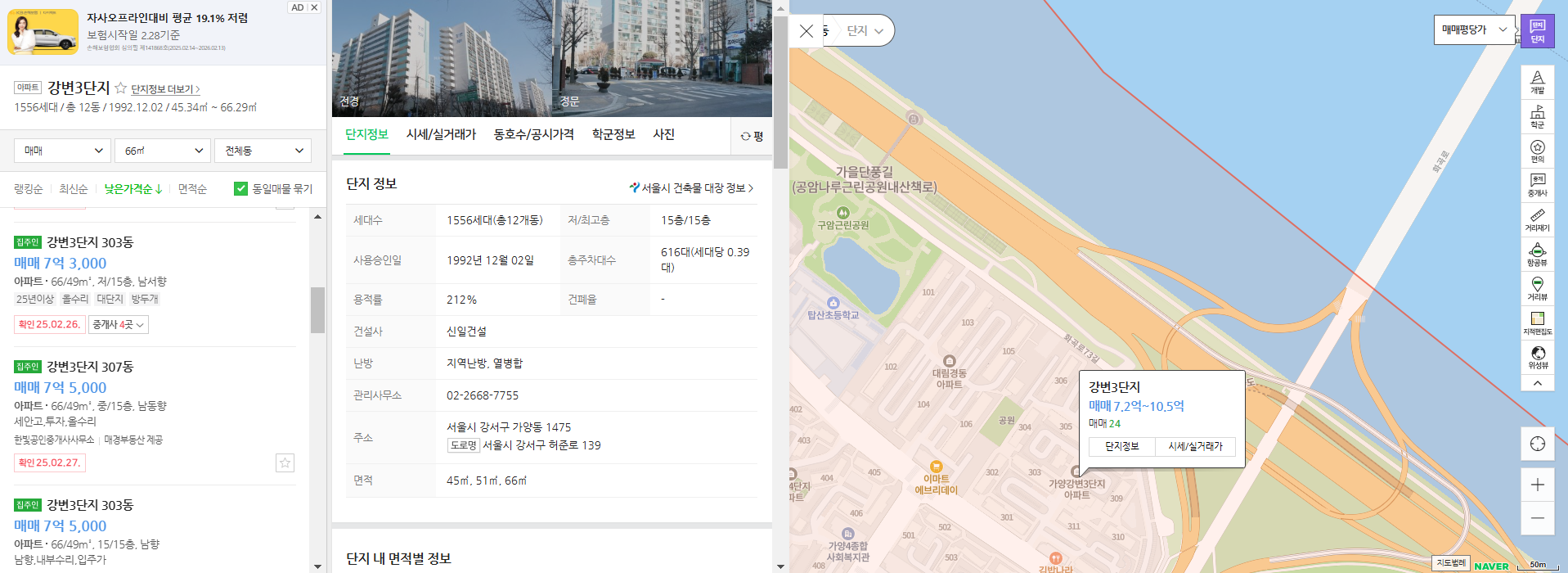두번째는 가양강변3단지입니다. 1992년 준공 1556세대 대단지입니다. 13평, 15평, 20평대로 이루어져있습니다.